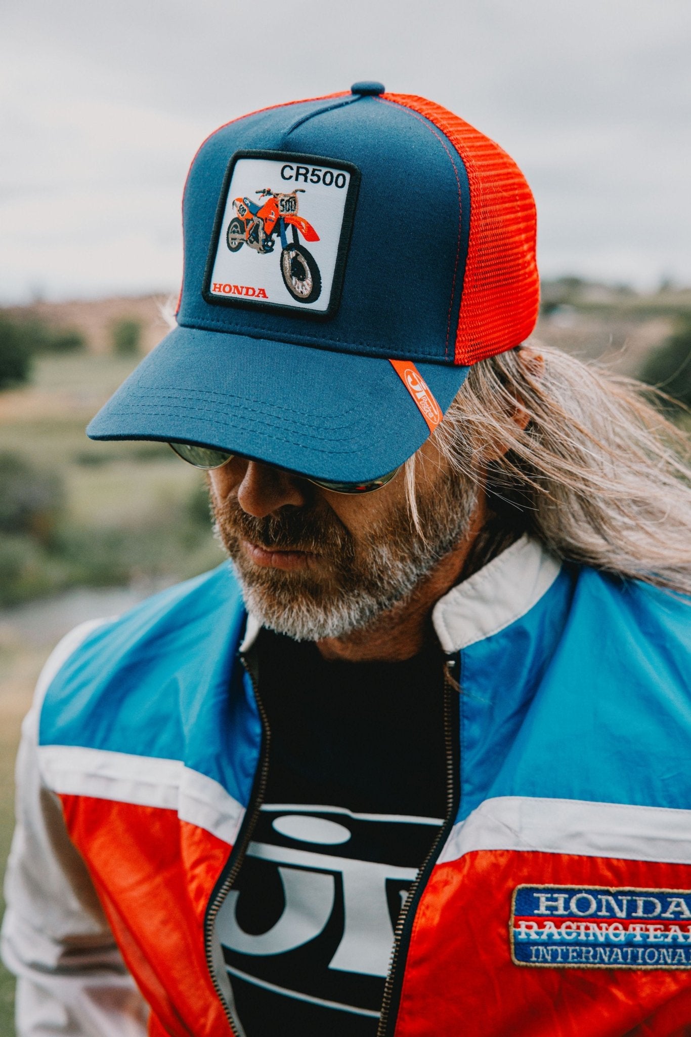 Red Mesh, Navy Hat.