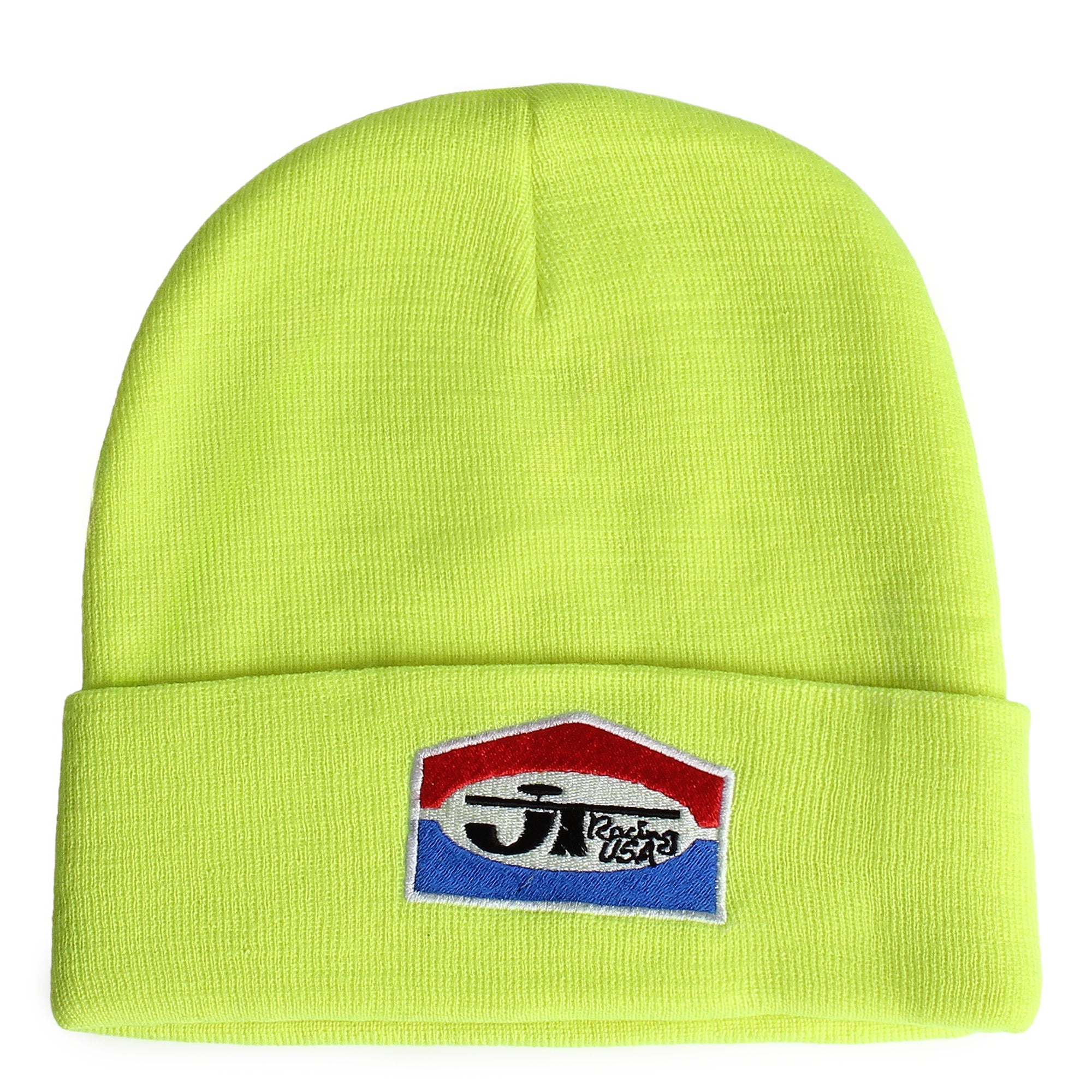 100% Acrylic knit, fold beanie. Embroidered logo patch on the front. Keeps it real JT Racing!